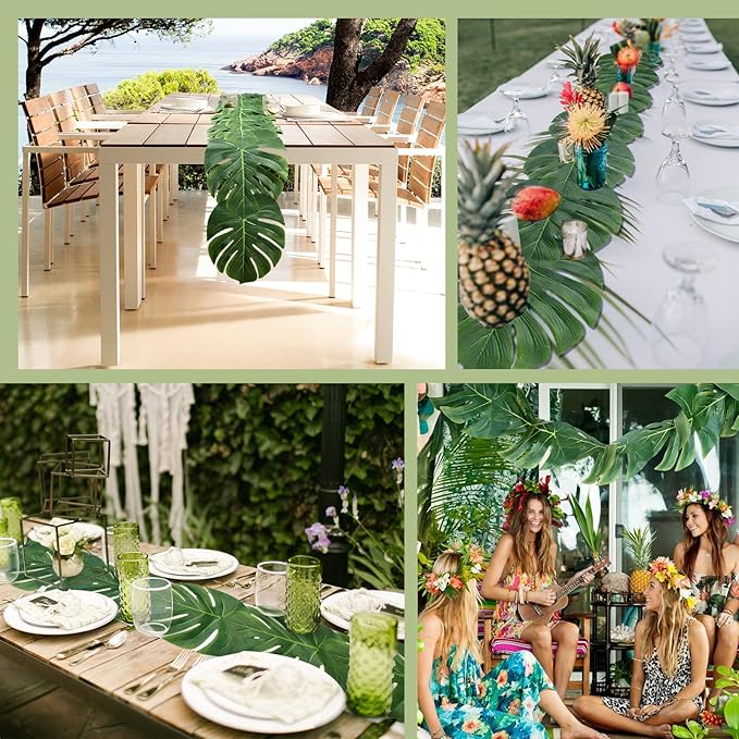 - Package includes: Includes 4 exquisite artificial palm leaves table runners that are designed to provide a real tropical feel to your table setting. Unlike single artificial leaves, these runners are composed of connected leaves that form a complete table runner. With this package, you can effortlessly achieve the perfect tropical look for your event.