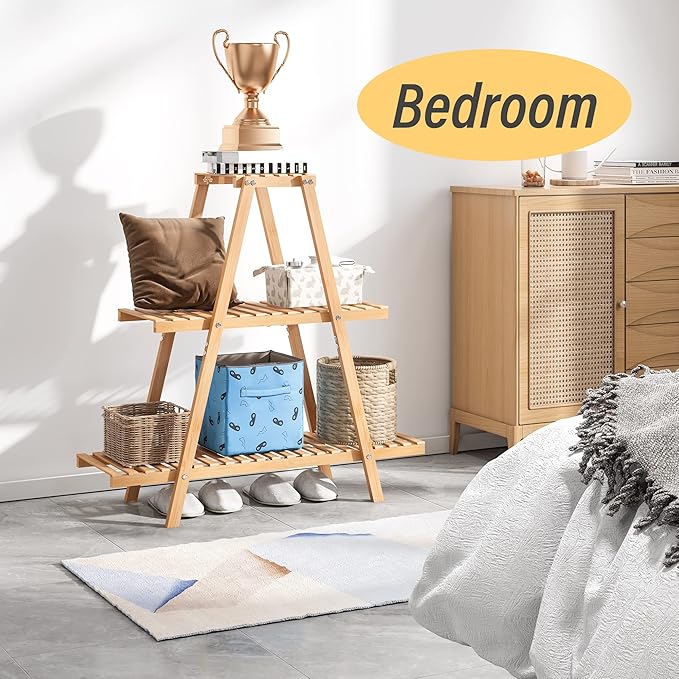 Bamboo Plant Stand - Indoor/Outdoor 3 Tier Plant Ladder, 8 Potted Flower Holder, Natural
