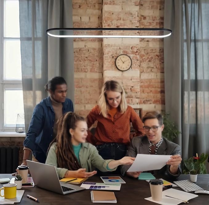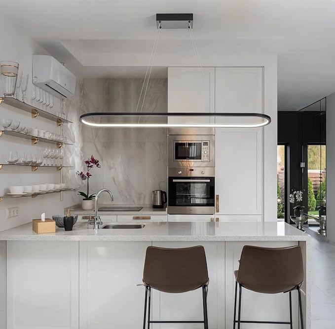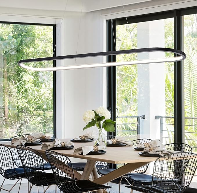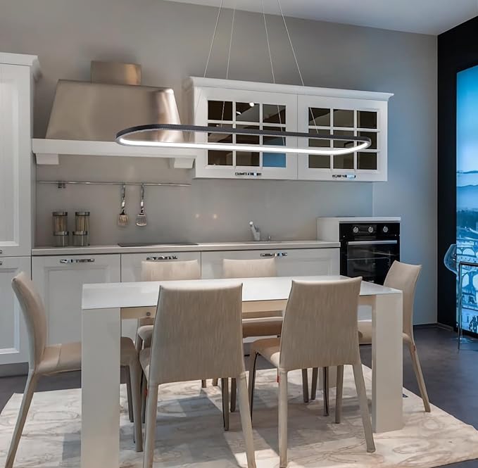 - LINEAR CHANDELIER: This dining room chandelier is designed in an oval ring, combining classic and modern, which can create an elegant and contemporary atmosphere. Suitable for kitchen island, dining table, office, foyer, hallway, bars, and hotels.