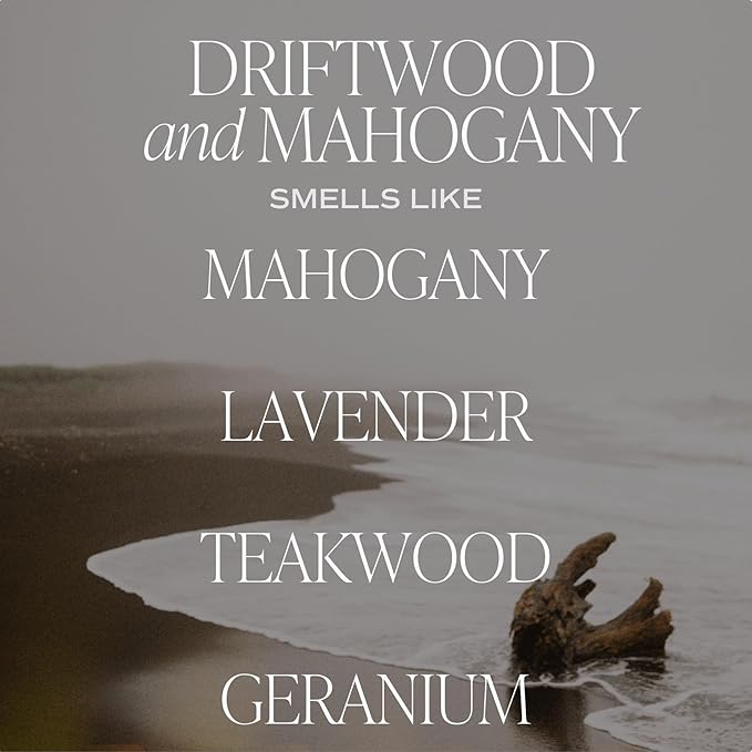 - SMELLS LIKE - Let scent notes of fresh lavender, geranium, warm mahogany, and earthy wood create a calming retreat with this Driftwood and Mahogany candle. Its versatile aroma offers a perfect balance of grounding and refreshing scents, ideal for year-round relaxation or soothing aromatherapy. Perfect for those seeking masculine candles for men or a timeless, unisex fragrance to elevate any space.