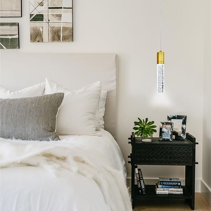 Linear Chandeliers LED Pendant Lights for Kitchen Island Fixtures Bubble Crystal Chandeliers 6000K Daylight LED Bulbs Mini Pendant Lighting for Island Modern Pendant Light Fixtures