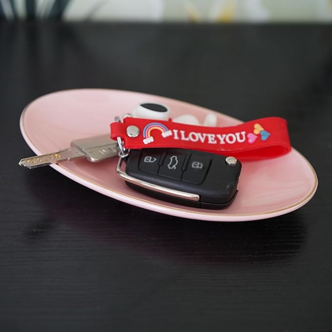 HANKOR Ceramic Key Bowl for Entryway Table, 7 x 4 Key Dish Tray Catch All Bowl, Small Decorative Bowl for Key Jewelry Ring, Pink