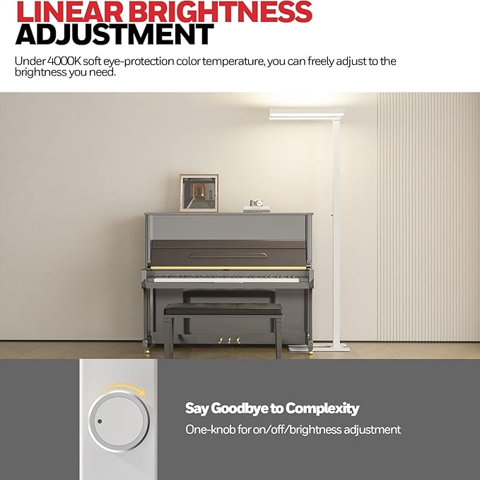 - 【4000K Natural Daylight for Applicable Scenes】 The 4000K color temperature of bright floor lamp is like the morning light at 10:00 GMT, which is not dazzling when viewed directly.With the bright light and generous appearance, the floor lamp can be placed in the living room, piano room, warehouse, bedroom to add fashinable to your house. It is a great choice as a reading light or an office lamp.