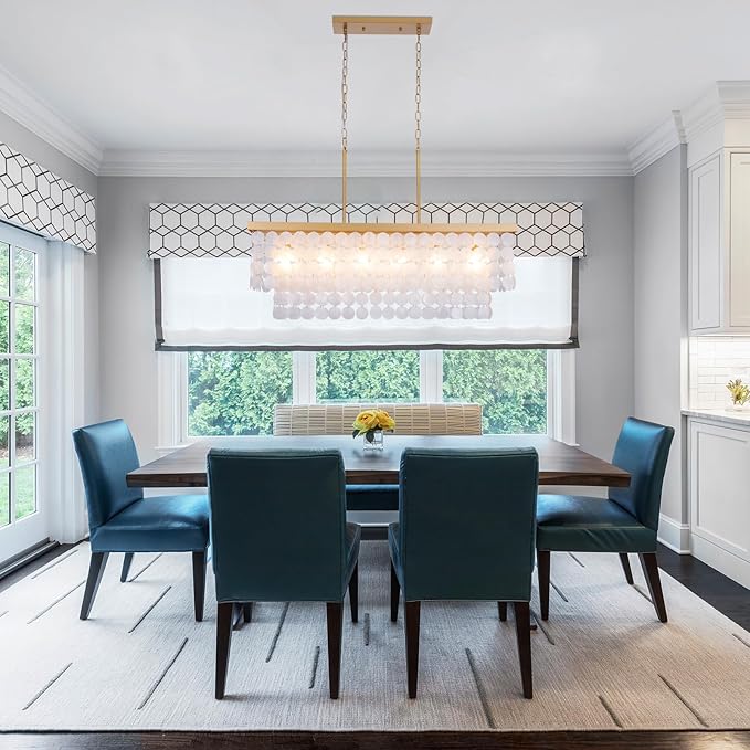 TOCHIC Rectangular Capiz Shell Chandelier, Coastal Beach Lighting 6 Lights, Modern Gold Chandelier Shell Pendant Light for Kitchen Island, Dining Rooms, 2 Tier, 39.3in L