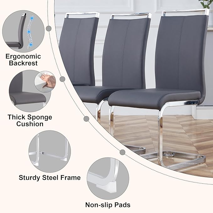- High-Quality Construction:The 63" rectangular dining table is crafted from durable MDF and high-strength tempered glass; the surface is easy to clean;the modern PU dining chairs feature C-shaped chrome-plated legs,offering enhanced durability