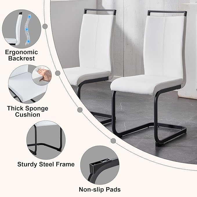 - High-Quality Construction:The 63" rectangular dining table is crafted from durable MDF and high-strength tempered glass; the surface is easy to clean;the modern PU dining chairs feature C-shaped chrome-plated legs,offering enhanced durability