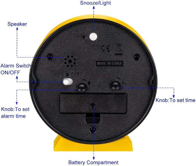 4.5" Battery Operated Antique Retro Analog Alarm Clock, Small Silent Bedside Desk Clock,Lighted on Demand, Battery Operated, Snooze, for Living Room, Bedroom, Bedside, Desk(Yellow)
