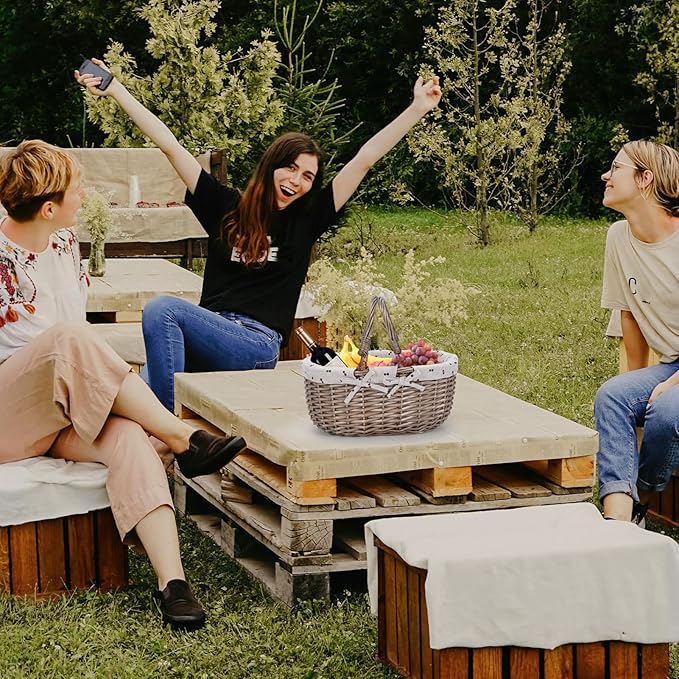 - Material: Picnic basket is made of willow. liner: USA rural style removable blue and white gingham pattern liner,it is easy to clean.