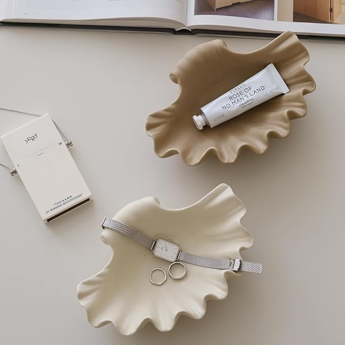 WENSHUO Ocean Shell Ceramic Decorative Bowl, Jewelry Dish for Rings, Trinkets, Crème (Matte Crème)