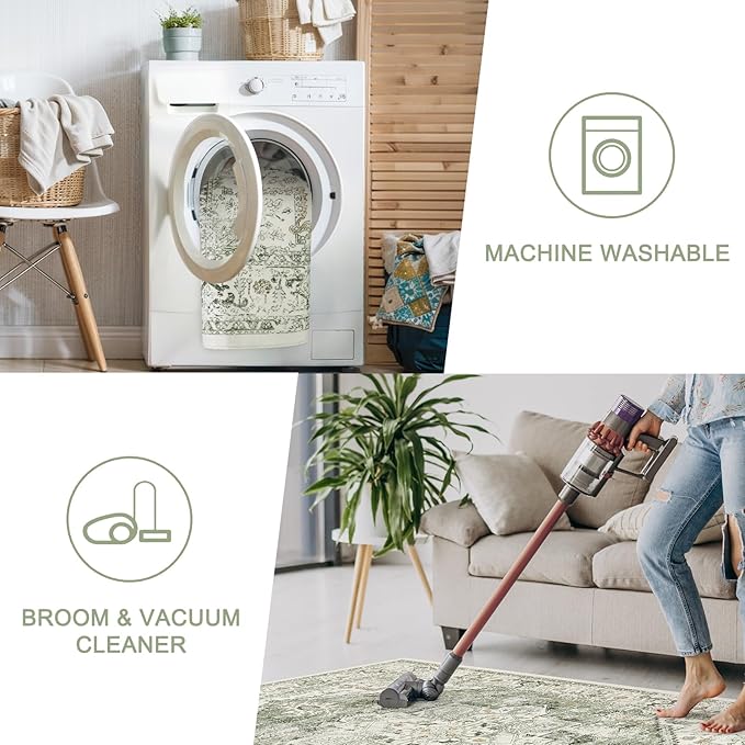 - [Machine Washable Area Rug]:Low-pile rugs reduce hiding places for dust and dirt, are easy to clean with a low-powered handheld vacuum, broom or rag, and machine washability makes cleaning up messes a breeze.Wash in cold water on gentle cycle, do not bleach, air dry low to keep rug color.