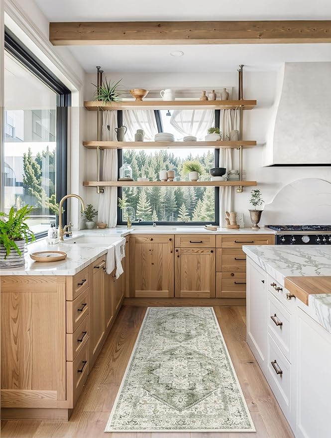 - [Foldable Soft Oriental Rug]:Washable 2x6 rug folds without leaving creases for easy seasonal storage.Chic boho and retro kitchen runner rug featuring gorgeous patterns printed on soft & cozy short pile for a velvety touch. Vintage Sage exudes tranquility and inspires quiet meditation.