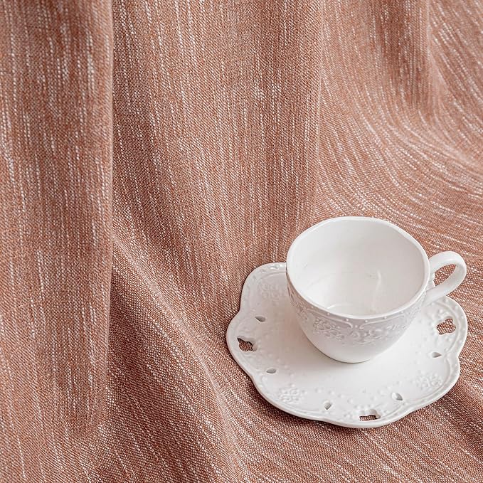 MYSKY HOME Ceiling Curtains for Living Room, Soft Cotton Curtain Polyester Blend Semi Sheers Light Filtering Window Treatments Decor Back Tab Top Panel, 50" x 95", Brick Red, 2 PCs