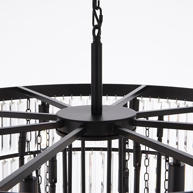 - Modern Crystal Chandelier: dazzling, shiny, sparkly, and rich, the clear and simple black lines are equipped with high-quality k9 crystals to inject a dazzling brilliance into your space, are best suited to traditionally styled homes but can add a romantic touch to shabby chic or French country homes as well