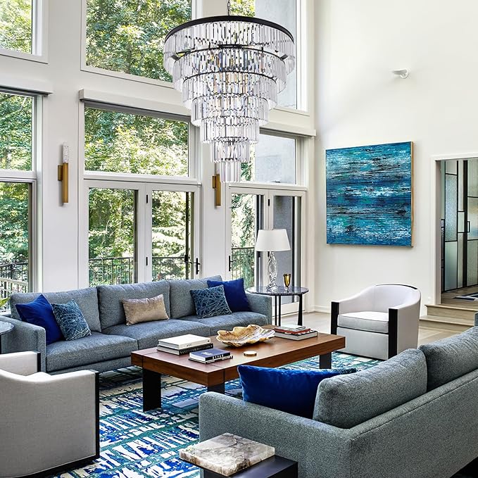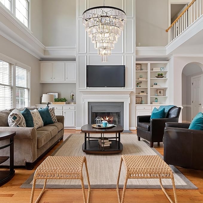 TOCHIC Large Crystal Chandelier for High Ceiling, 40 inch 7-Tier Modern Black Crystal Chandeliers Lighting Fixture, Round Light for Entryway Staircase Foyer Living Dining Room (Black, 40 Inches)
