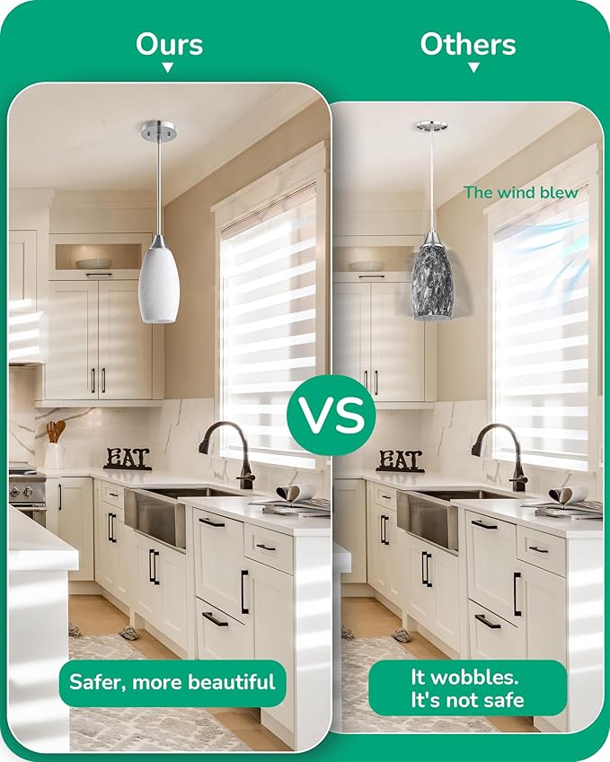 - [Stylish for Any Space] This handmade glass pendant light boasts a clean, modern design that seamlessly blends with any decor style; ideal for kitchen islands, bars, kitchen sinks, bathrooms, and dining areas, adds a touch of elegance to your space