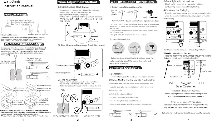 - Whisper-Quiet Operation Requires 1 AA carbon battery (not included) - alkaline batteries may cause malfunctions. Advanced silent movement ensures peaceful ambiance in bedrooms, home offices, or meditation spaces.