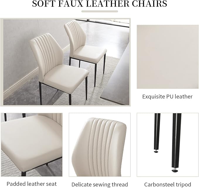 - 4-piece modern dining table set with an elegant look and provides a comfortable and relaxing dining experience. The rectangular dining table set offers exceptional durability and features 2 contemporary, high-quality leather chairs and a comfortable bench, a beautiful wooden dining table that will enhance your dining space. Enjoy a delicious breakfast, lunch or dinner with friends or family on this striking rectangular dining table.
