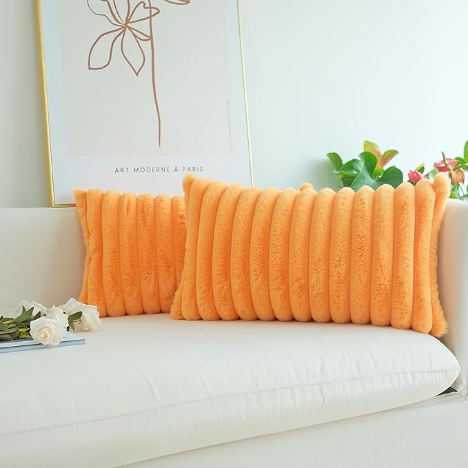 JOJUSIS Pack of 2 Faux Fur Plush Decorative Throw Pillow Covers Couch Cushion Case Soft Pillowcases (Orange, 12 x 20-Inch)