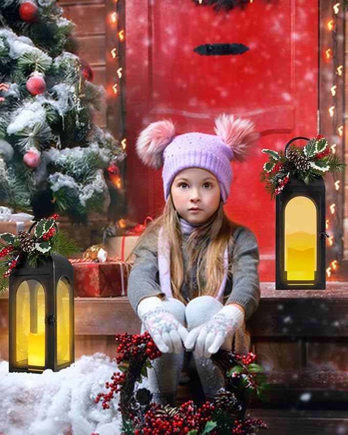 - Premium Craftsmanship: Crafted from high-quality materials, including metal construction and real glass panes, our lanterns exude durability and elegance. The festive red berry accents create a cozy holiday atmosphere