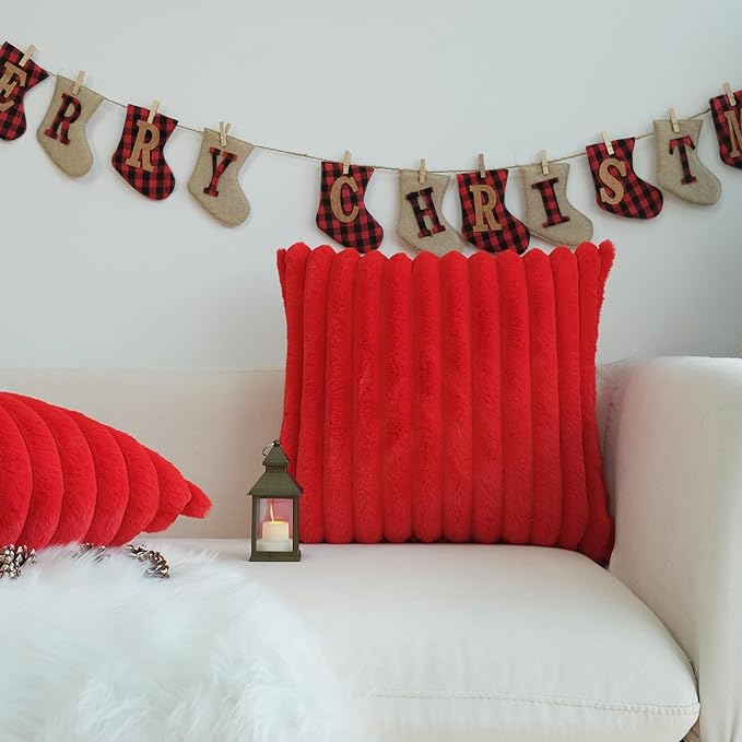 JOJUSIS Pack of 2 Faux Fur Plush Decorative Christmas Red Throw Pillow Covers Couch Cushion Case Soft Pillowcases (Red, 18 x 18-Inch)