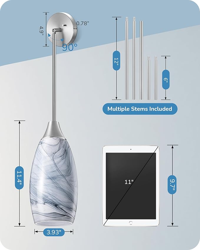 - 【Height Flexibility】Our adjustable pendant light includes three 12-inch and two 6-inch metal rods, unlike similar products, providing superior durability and stability; 0-48 inches adjustable height to adapt to various scenarios and meet all your needs