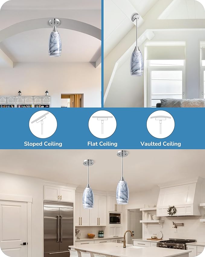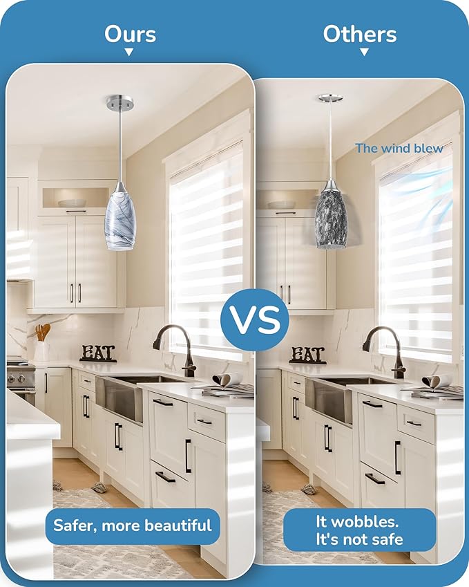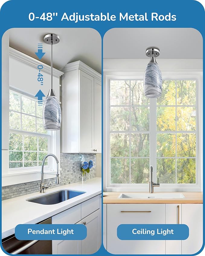 - 【Style for Every Space】With its clean and modern design, this handmade glass pendant light effortlessly complements any decor; ideal for kitchen islands, bars, kitchen sinks, bathrooms, and dining areas, adds a touch of elegance to your space