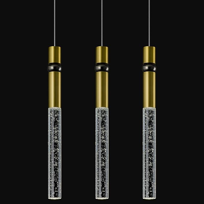 Pendant Lights Kitchen Island Light Fixtures Dimmable LED Modern Pendant Light with Bubble Crystal Pendant Lighting for Kitchen Bedroom Hallway Entryway (Gold 2-Pack)