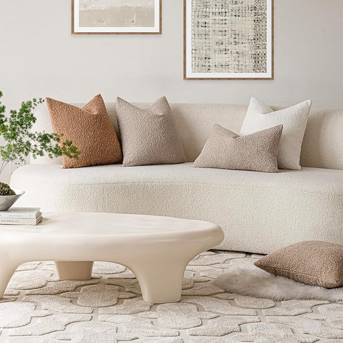 Foindtower Pack of 2, 20 x 20 Inch, Decorative Textured Boucle Throw Pillow Covers Accent Solid Pillow Cases Cozy Soft Couch Cushion Case for Chair Sofa Bedroom Living Room Home Decor, Oatmeal