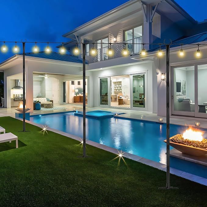 - Built for outdoor durability: Made from thickened steel with a black powder-coated finish, these poles resist rust, rain, and wind. Designed for long-term outdoor use, they’re perfect for enhancing your holiday lighting, camping setup, or deck party. A reliable lighting support system for every season.