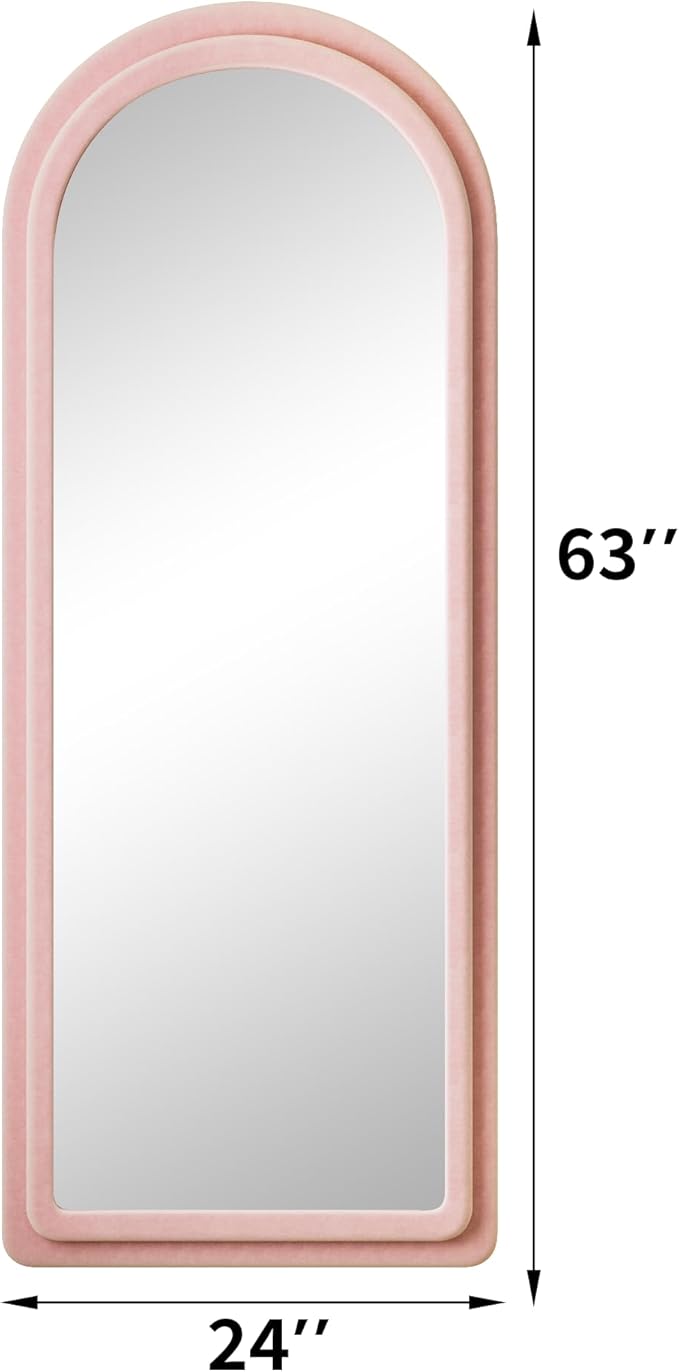 Floor Mirror, Full Length Mirror with Stand, 63"x24" Freestanding Arched Mirror Full Length Hanging or Leaning, Wall Mounted Mirrors with Flannel Frame, Large Mirrors for Bedroom (Pink)