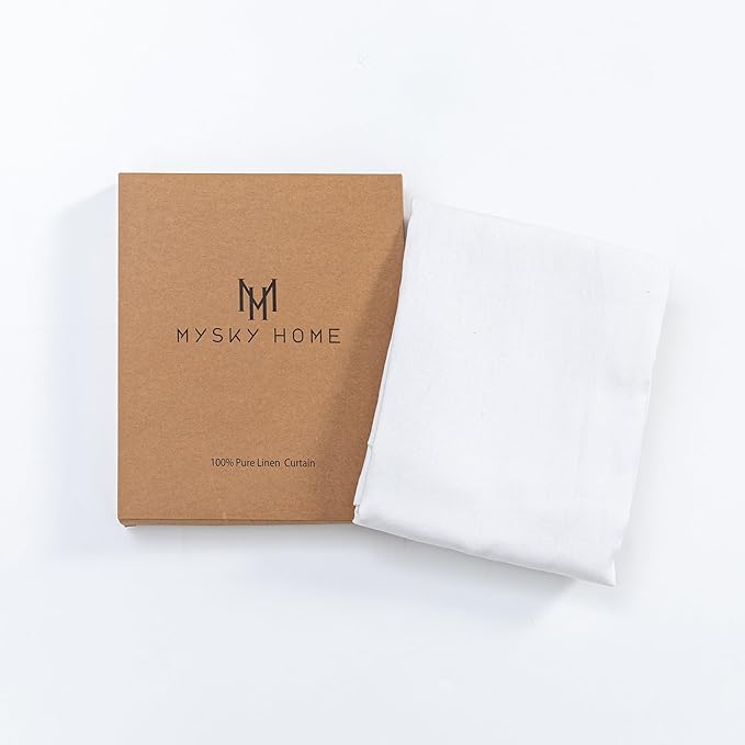 MYSKY HOME White Linen Curtains for Living Room, 100% Linen Natural Semi Sheer Curtains & Drapes 84 inches Length 2 Panels Farmhouse Country Light Filtering Bedroom Window Rod Pocket, 50" Wide, White