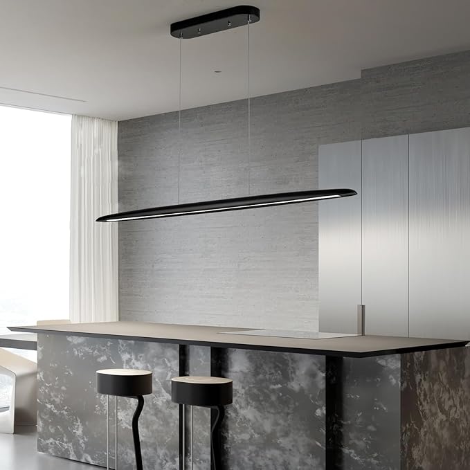 - ❤【Minimalist Pendant LED Linear Chandelier for Kitchen】This sleek design illuminating the space with a single long rail powered with state of the art LED technology. The rest of the piece is kept simple, hung with cables from a matching rectangular canopy. Contemporary in both style and application, the minimalism aesthetic paired with energy efficiency creates a truly modern lighting option.Making your cooking and dining experiences more intimate with upscale lighting from the 51" Linear LED Pendant.