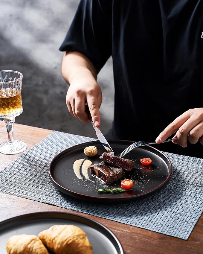 - 【FOOD GRADE NATURAL GLAZE】All of our dinnerware sets are made of food grade glaze. You can safely use them to serve steaks, salads or desserts, no need to worry about any harmful substances leaching into the food.