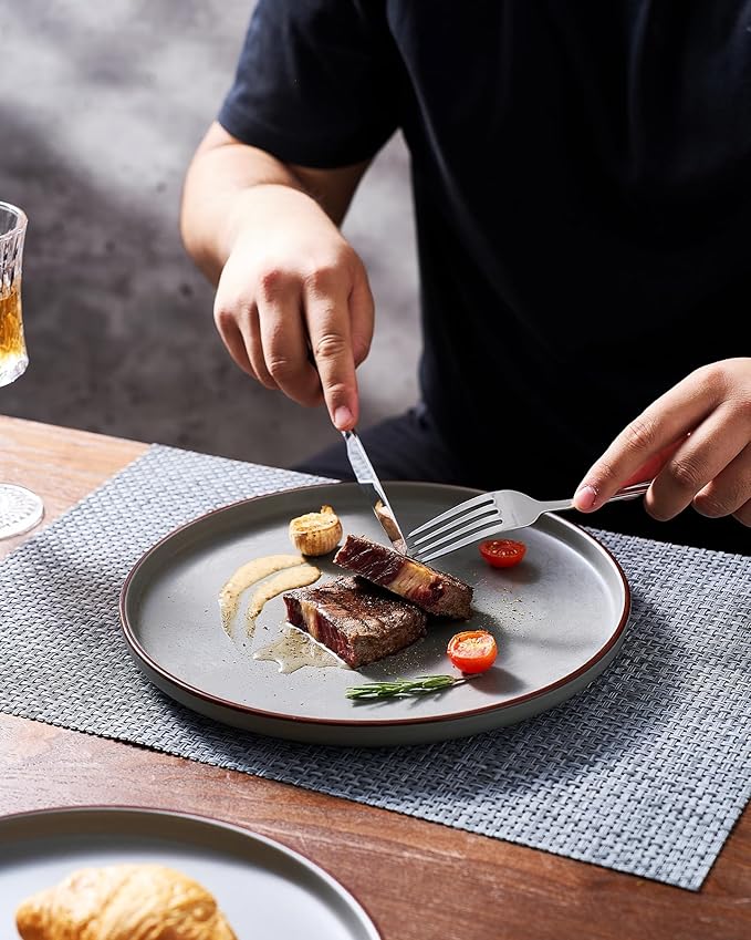 - 【FOOD GRADE NATURAL GLAZE】All of our dinnerware sets are made of food grade glaze. You can safely use them to serve steaks, salads or desserts, no need to worry about any harmful substances leaching into the food.