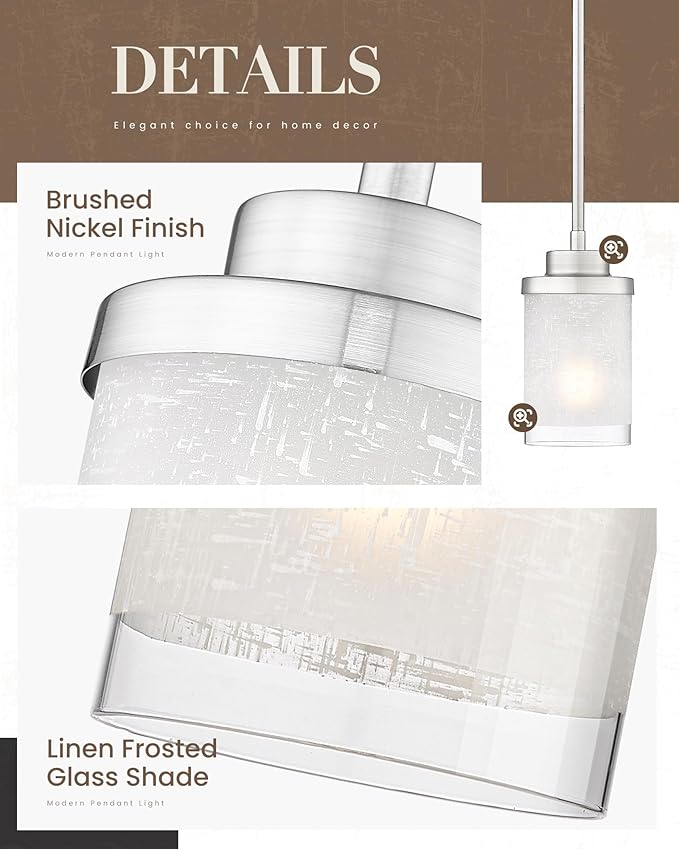 TENGXIN Modern Pendant Light for Kitchen Island, Brushed Nickel Hanging Ceiling Light Fixture,Farmhouse Pendant Lighting for Dining Room Bedroom Bar Office,TXPLBN01