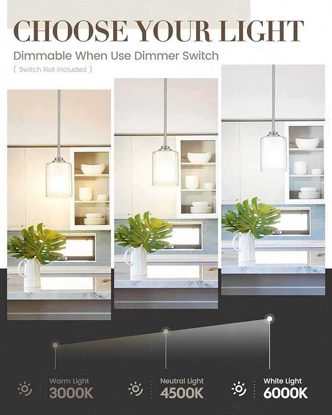 - DUAL GLASS DESIGN:Size:4.7" (Diameter),Pendant Light with dual glass shade in matte black finish, provides plenty of illumination. Perfect for Bedroom, Living room, dining room,coffee, kitchen, hallway, bar club and loft and any living areas .