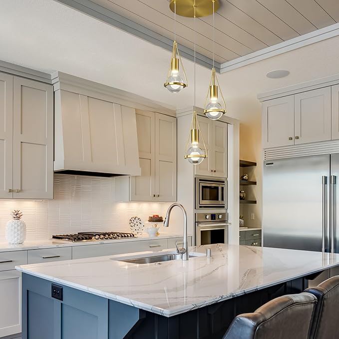 Gold Dandelion Pendant Light in Brushed Brass Finish, 3-Light Modern Crystal Kitchen Island Pendant Lighting Dimmable LED Hanging Ceiling Light Fixture for Bathroom Bedroom