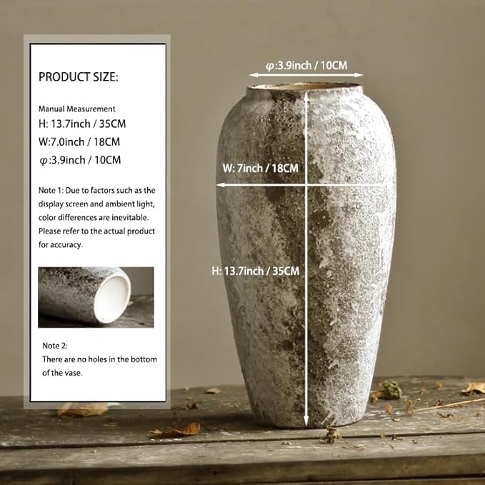 - đˇăVINTAGE FARMHOUSE VASE-ă- These ceramic vase comes in 3 different heights type for medium, large and tall applications. The distressed design adds an authentic vintage touch. It's a perfect captivating centerpiece on your dining table, mantel, or sideboard. Add farmhouse charm to your living space with our rustic floor vase.