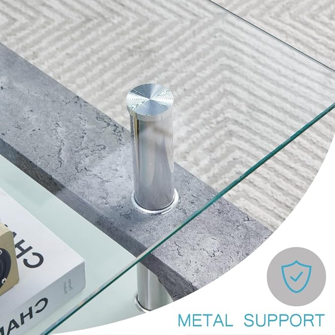 - 1. Stylish and modern: Our glass coffee table features an industrial style with its sleek gray design, creating a contemporary addition to any home decor.
