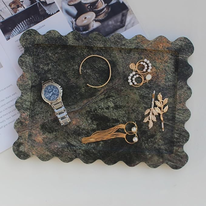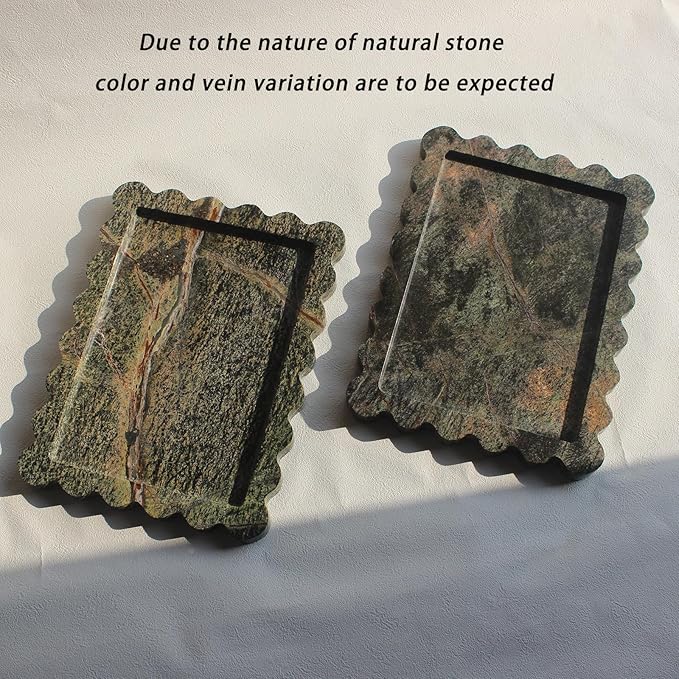 - ➤100% NATURAL MARBLE: The scalloped tray is made of green Luxury marble, with a special marble pattern, and each tray is unique in the world. Unlike ordinary plastic, resin, or PU material, natural marble is much sturdier while possessing exquisite shine and texture