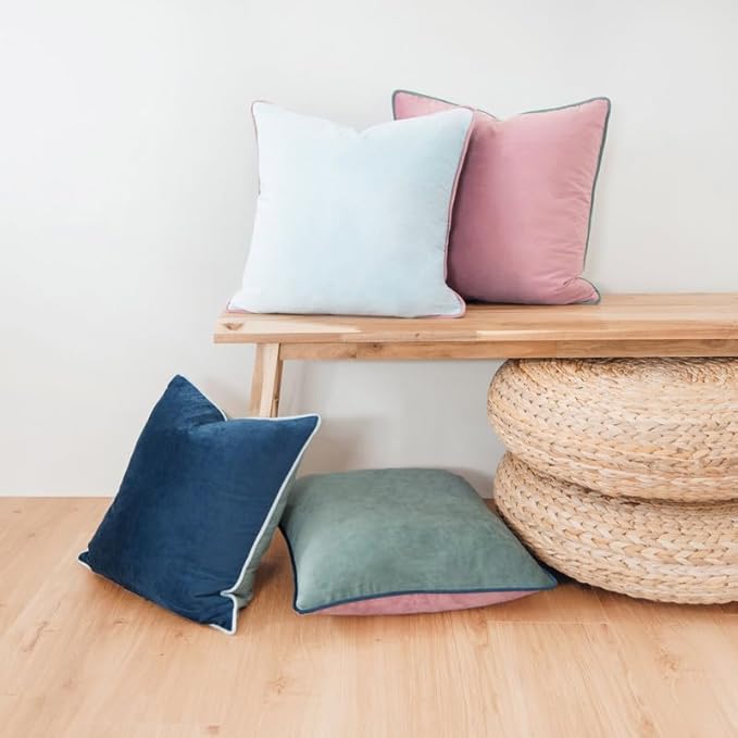- SET OF 4: Includes 1 pink velvet pillow + 1 teal velvet pillow + 1 blue velvet pillow + 1 light blue velvet pillow