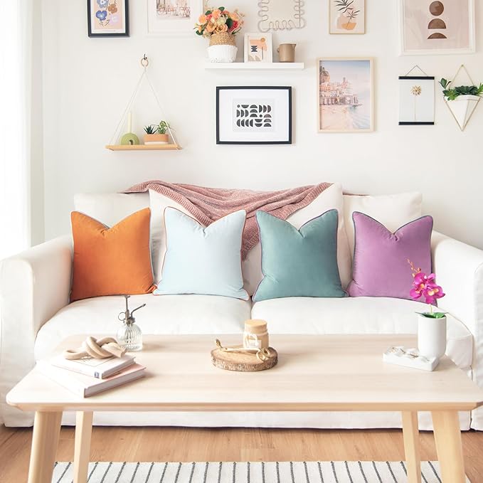 - SET OF 4: Includes 1 orange velvet pillow + 1 teal velvet pillow + 1 purple velvet pillow + 1 light blue velvet pillow