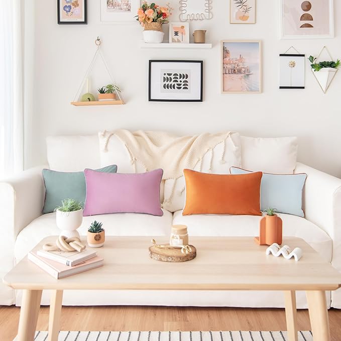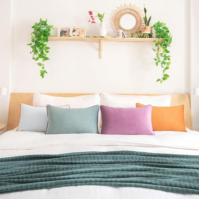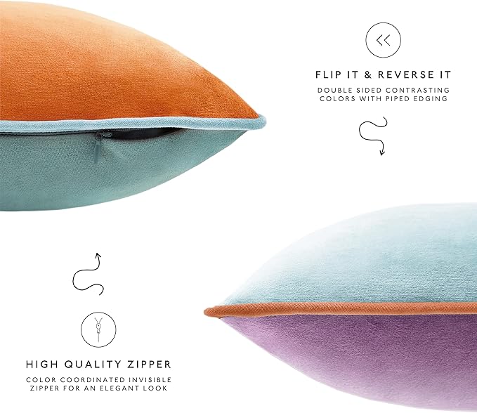 - SET OF 4: Includes 1 orange velvet pillow + 1 teal velvet pillow + 1 purple velvet pillow + 1 light blue velvet pillow