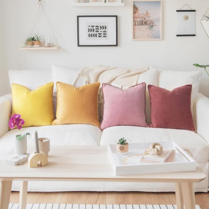 - SET OF 4: Includes 1 bright yellow velvet pillow + 1 honey yellow velvet pillow + 1 pink velvet pillow + 1 pink ochre velvet pillow