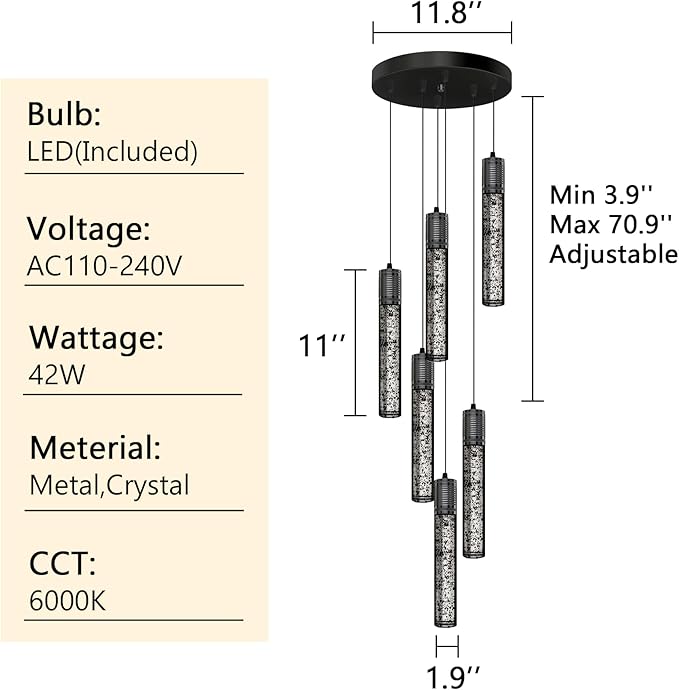 - 【Easy to install and adjust the hanging wires】Hard-wired chandelier, includes installation kit package for fast installation. It is allowed to adjust the length of hanging wire at any time after installation as to meet your needs