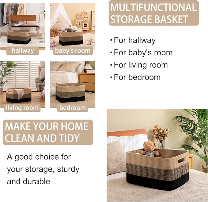 - Decorative Blanket Storage for Living Room:This rectangular blanket basket is more stable and easier to restore its sahpe after you receive the package. The 25’’ x 16’’ x 16’’ large storage basket can also used to store blankets, pillows, cushions, toys, clothes and towels