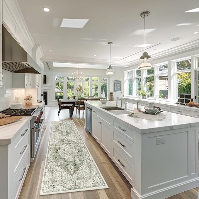 - [Foldable Soft Oriental Rug]:Washable 2.5x8 rug folds without leaving creases for easy seasonal storage.Chic boho and retro kitchen runner rug featuring gorgeous patterns printed on soft & cozy short pile for a velvety touch. Vintage Sage exudes tranquility and inspires quiet meditation.