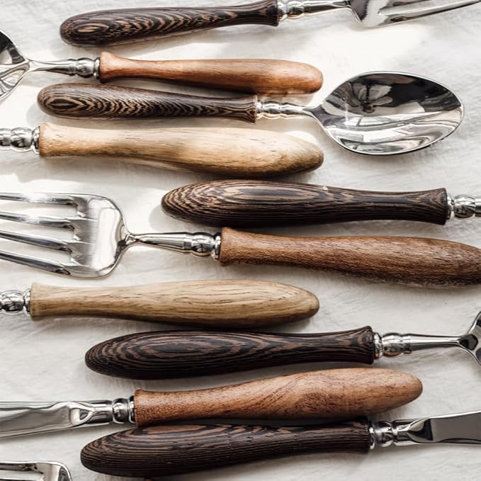 - 🍽+【Varied】 With forks, dinner knives, spoons and teaspoons, this silverware set is a must-have for a family or restaurant. Whether for everyday use, preparing dinner, family gathering, birthday party or wedding reception, this set is an irreplaceable dining tool.