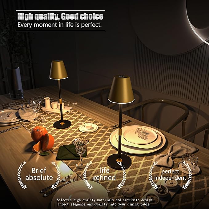 LED CordlessTable Lamp,4000mAh Rechargeable Battery Desk lamp,3 Level Brightness Beside Night Light, Minimalist Design, for Couple Dinner/Coffee Table/Restaurant/Bedroom(Gold&Black 4PACK)