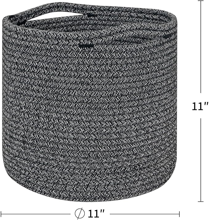 voten Storage Cubes Baskets Bins Organizer 11x11x11'' Fit 12x12''Cube Storage Organizer Bookcases Shelves,Roomy Cute Durable Woven Cotton Storage Basket for Organization,Round 3Pack Mixed Black